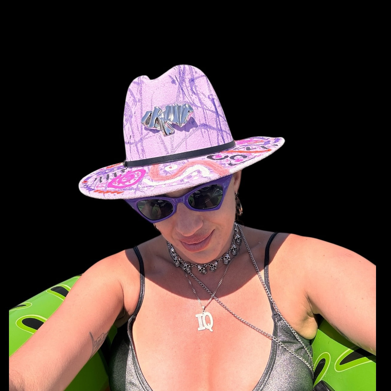 Enchanted Orbit: Handcrafted Purple Fedora with Neon Symbols