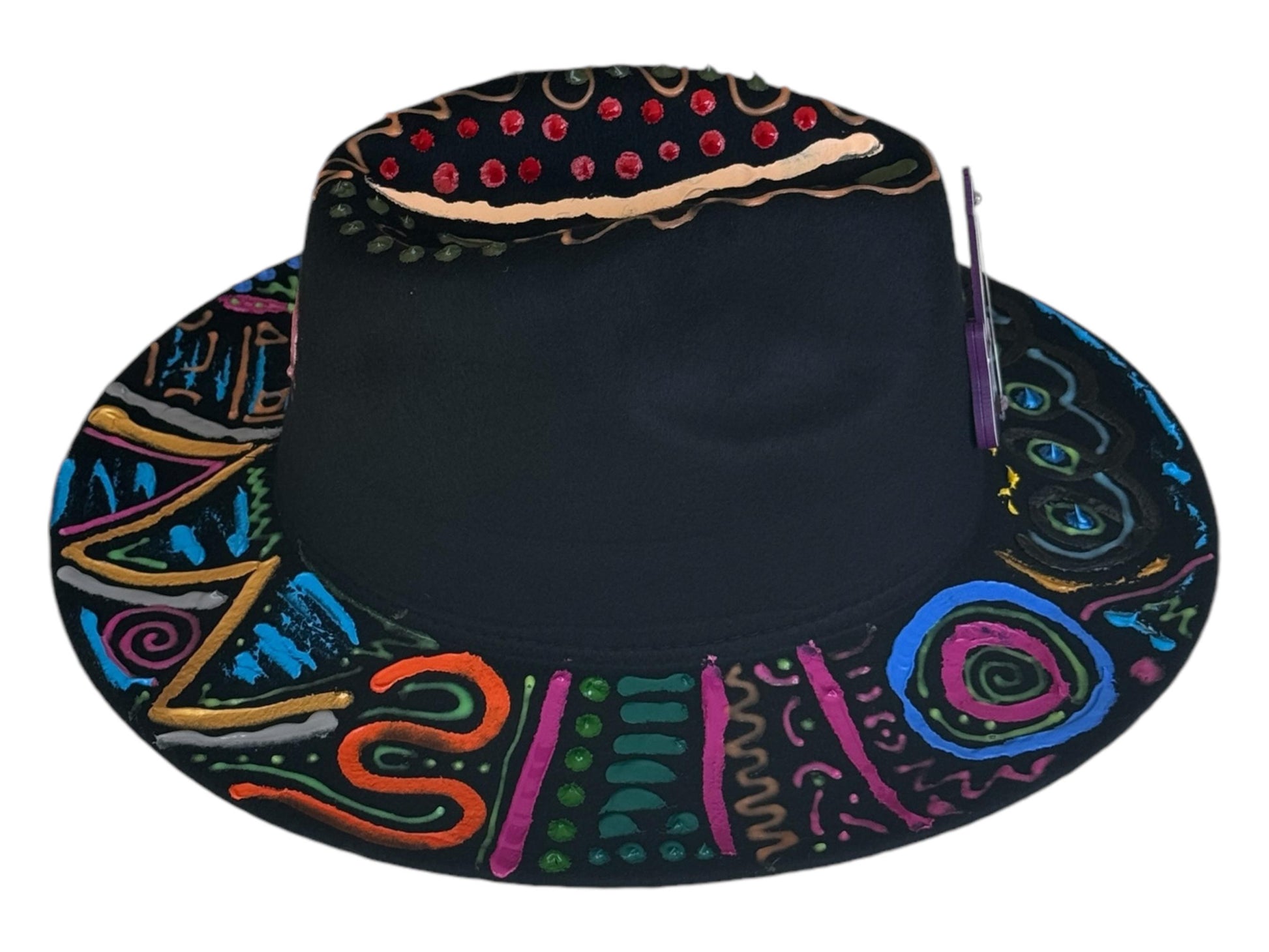 Psychedelic guitar festival hat, hand-painted, vibrant colors, festival-ready, perfect for Burning Man, concerts, rave, party, costume event